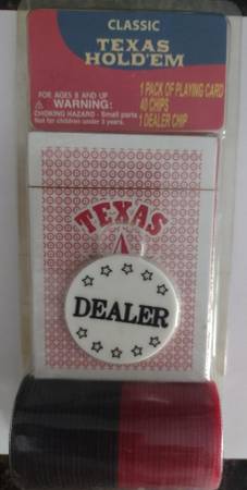 NEW in unopened package, classic Texas Hold'Em card game 1 pack of playing cards 40 chips 1 dealer chip Instructions From non-smoking home **If you are reading this ad, this is available to pick up...