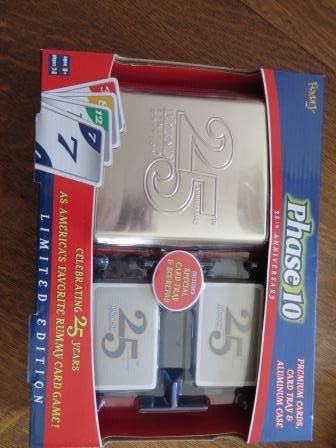 Phase 10 25th Anniversary Edition—gift set of Premium cards, card tray, and aluminum case. Brand new, in original box, gift quality. $30
