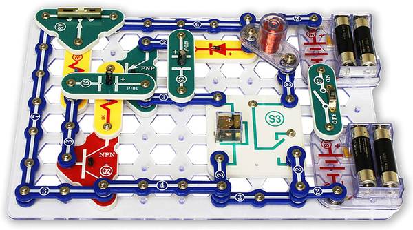 In an age where kids spend too much time messing around on computers and mobile devices, this electronics lab for ages 8+ offers practical, hands-on learning of basic concepts of electricity plus analog and digital circuitry through hundreds of fun experiments. The thrill of hooking up buttons, motors, LEDs, and making working sirens, radios, etc. can spark a lifelong interest in science and engineering.