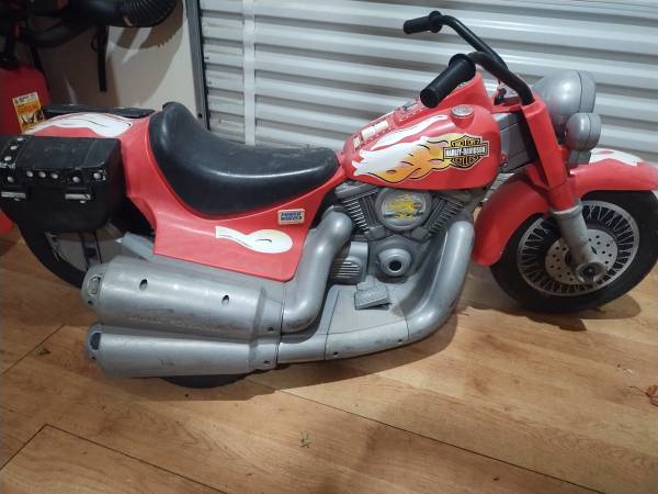 Hey there, selling a kids Harley-Davidson Power Wheels. It's in good working order but is missing the buttons for the motorcycle sounds, charger included. Looking to get $75 or best cash offer....