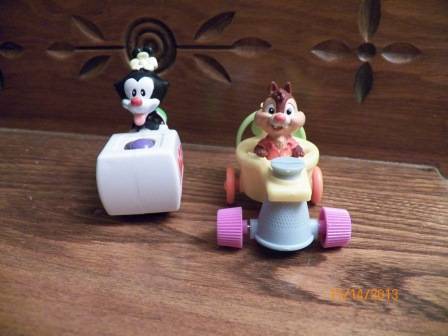 McDonald's Disney Rescue Ranger Gadget Chip & Dale Car -- chipmunk driving a car with a large propeller on the back. Front wheels swivel. Retro toy from 1989 in perfect condition.