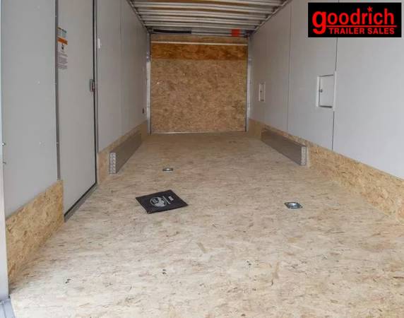 Stock # 26037 ALUMINUM FRAME 3500# Axles Easy Lube Hubs 4 Wheel Electric Brakes 15" Load Range D Radial Tires Aluminum Wheels 16" OC Floor & Roof 5' V-Nose w/Drive Out Ramp Stone Guard...