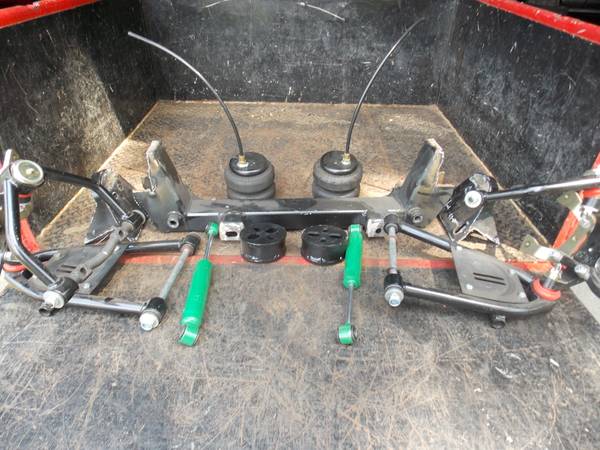 -CENTER X MEMBER - UPPER TOWERS- AIR BAGS- UPPER & LOWER "A" ARMS- BALL JOINTS- 2 " DROP SPINDLES- CALIPER BRACKETS- SHOCKS & INSTALLATION MANUAL-