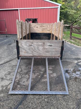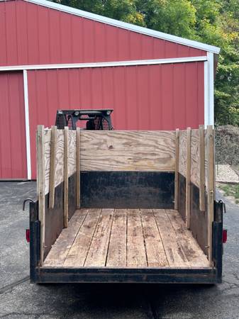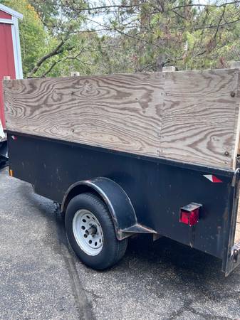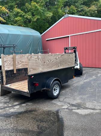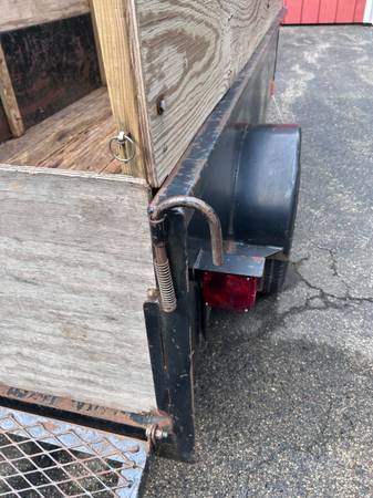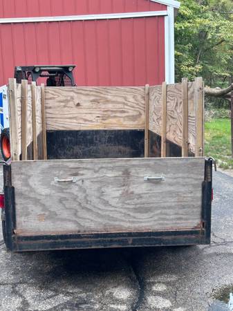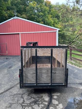 5x10 bed 36" metal sidewalls with removable extension wood walls. 3500# Axle Very well built heavy gauge metal used. Removable rear ramp/gates