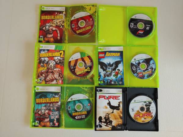 Downsizing as all kids have left home. All Xbox games are like new except the Batman cd has a few surface scratches but plays with no issues. There are 2 sets of pictures as I found 4 more discs plus the Kinect Rabbids.
