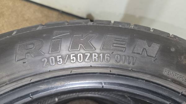 Summer tires used on a Ford Focus. Very grippy. Ideal for autocross. Claimed by Riken to be all-season tires, but that is a lie. Don't use these in the winter. 5-6 32nds tread remaining.