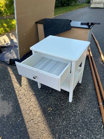 Also available: various items, including an IKEA storage bin/bench, black side table (desk), comfy chair & ottoman, glider (that needs its base reattached), twin bed (mattress, box spring, frame), wooden chairs, extra piece of drywall (great for patching walls),..
