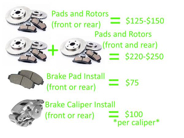 - Pads and Rotors Installed (Front OR Rear) = $125-$150