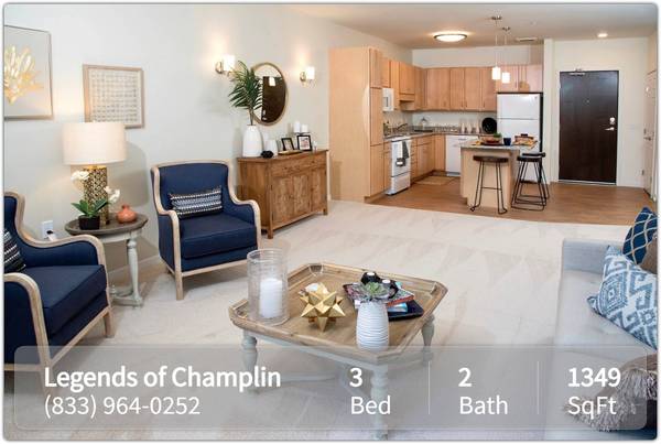 The Legends of Champlin participates in an affordable housing program. Household income & student status limitations apply. Please call for more details.