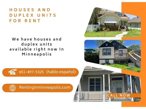 2nd floor 2br Duplex available ready to move in located in South Minneapolis, this unit is very spacious, fenced yard, all pets are welcome, big 3 season porch, and many more options. Call us today...
