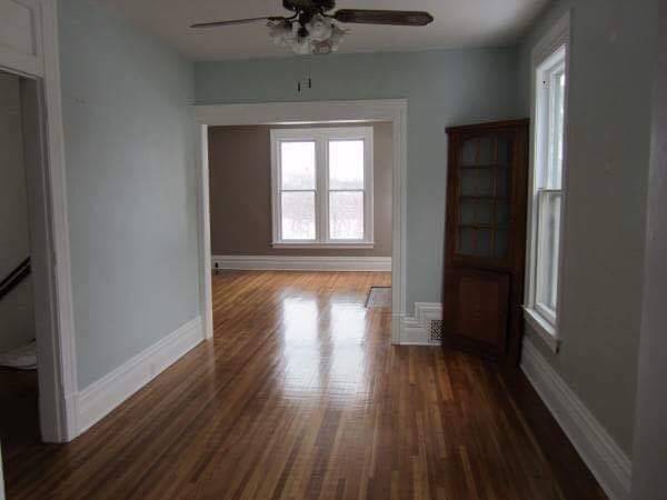 Three bedroom and one bath in an upper duplex. Located on a double corner lot across from a park. Former Mansion converted to duplex. Immense living room, formal dining room and the hallway that runs the length of the apartment. Hardwood floors with ceramic floors in kitchen and bath. Updated kitchen with high end stainless steel appliances including microwave. Tile backsplash and kitchen cabinets with soft close doors and drawers. Tall ceilings and 6-ft Windows create a large spacious feel. Always plenty of on-street parking. Free laundry in building. With many restaurants nearby. Bonus: early move in possible.