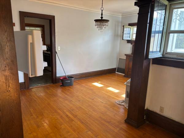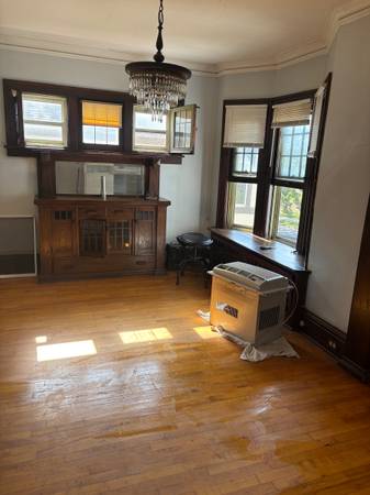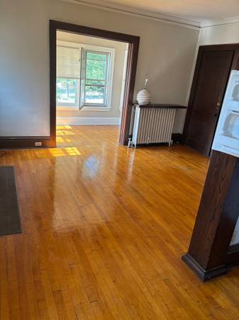 available now 2+ bedroom apartment large space features; 1300 square feed ,first floor hardwood floors original woodwork large dining room with beautiful built-ins large living room with working fireplace extra room /sun room /office/den large kitchen with dishwasher use of private back yard basement storage space free laundry 1 garage included please call for an appointment to see this nice apartment show contact info