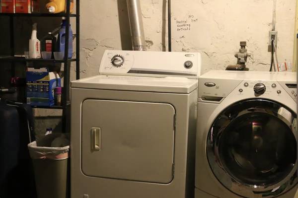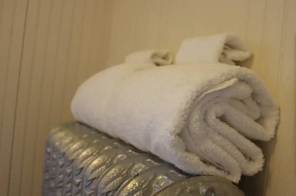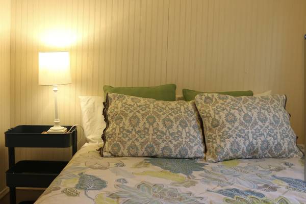 You’ll find it well stocked with shampoo, conditioner, body wash, a fresh bar of soap and fluffy white towels. Guests also have access to the washer and dryer and free off-street parking.