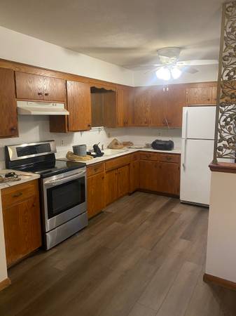New Paint, Flooring, Electric Stove, Bedroom Ceiling fan/Light, Toilet and Bedroom Carpet. Newer thermo pane windows.
