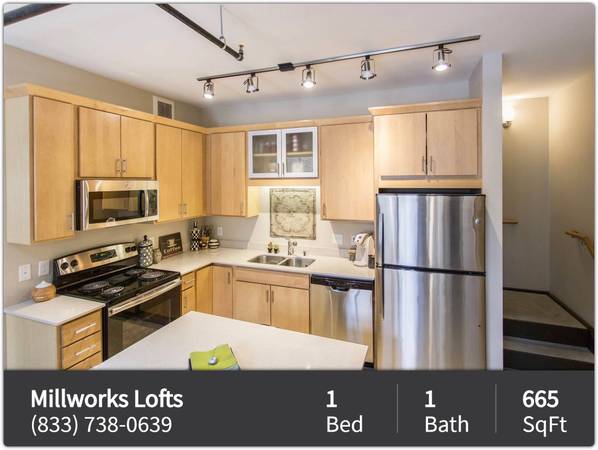 The community is surrounded by a charming neighborhood that is filled with family-owned stores and restaurants. Millworks Lofts features spacious floorplans with modern finishes like stainless steel appliances and quartz kitchen countertops. It also has amazing amenities like a rooftop deck and geothermal heating. Don't miss out on this great opportunity and apply online today!