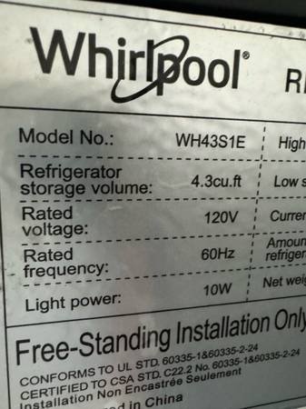 4.3 Cu.Ft. Mini Whirlpool Refrigerator. - appliances - by owner -...