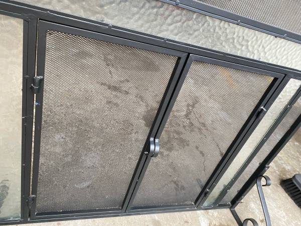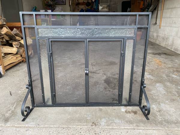 Fire place screen, metal, glass, magnet doors. W38” H 31”, we did not use it in our fire place. Still new-ish.
