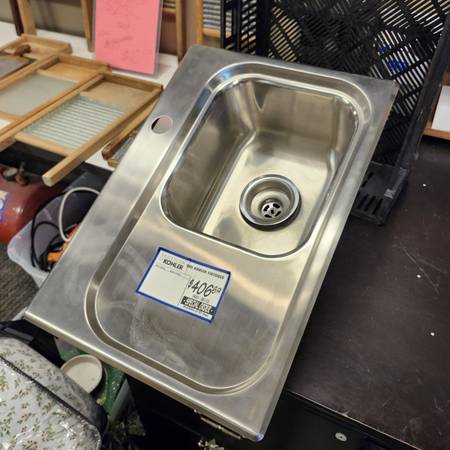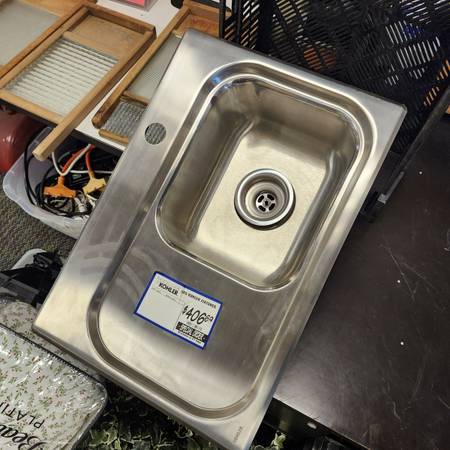 KOHLER stainless steel sink. Item #89230 Model K-2334-1. Never used or installed. 22" x 15" x 7.25".