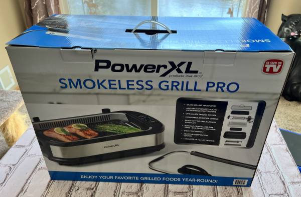 Looking to rehome a brand new in box PowerXL smokeless grill pro and griddle for year-round grilling. Airflow technology with suction fan to extract smoke. Model PG-1500. Comes with everything listed on box. Item never removed from box - would take it out and plug in for serious buyers only. From a clean and smoke-free home. Pick up in Maple Grove. First come, first serve. Cash, or Venmo pre-pay makes it yours and holds it for when you can pick it up.