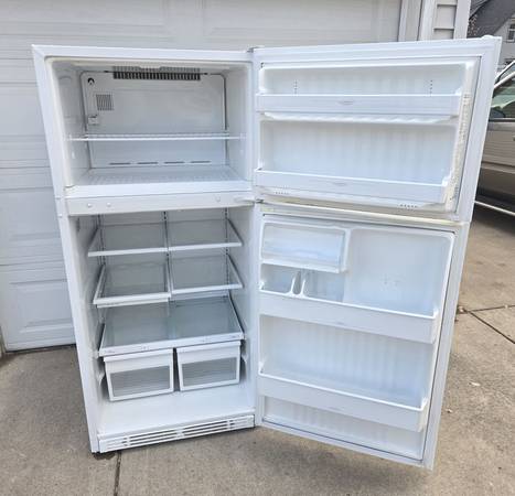 (If you see this listing, it is still available.) Made by GE. Works great, Currently it is plugged in and running in garage, easy to verify. Clean inside and outside. All shelves, bins &drawers, and gaskets are in good shapes. Its outside has some minor scratches, no effects on its use. We also have a working gas stove for sale. From kitchen remodeling, we have a fridge, a gas stove (Sold), and a dishwasher for sale, all in working conditions.