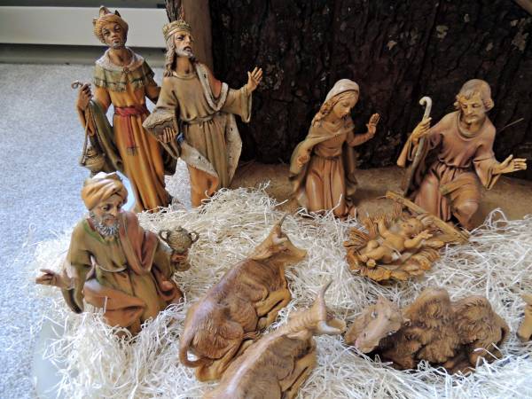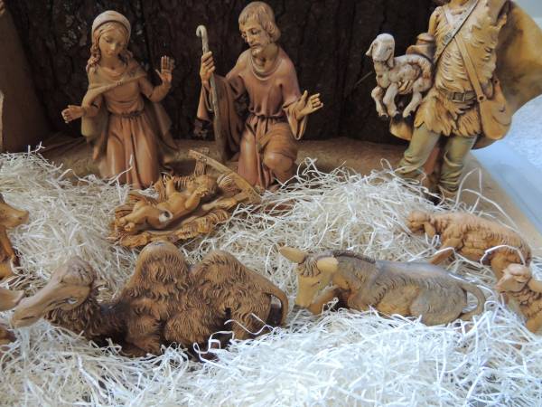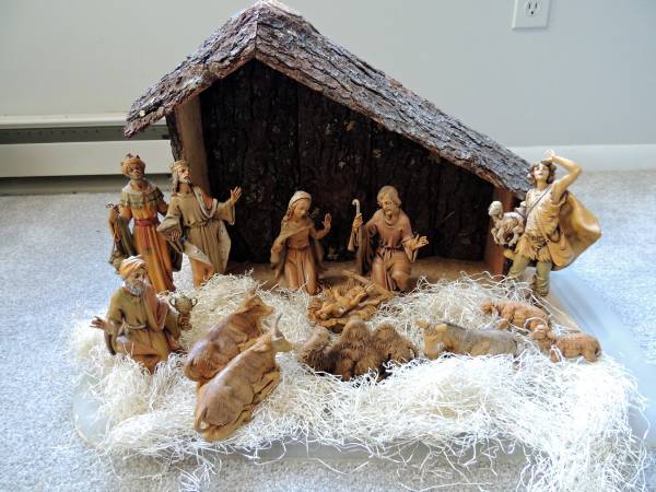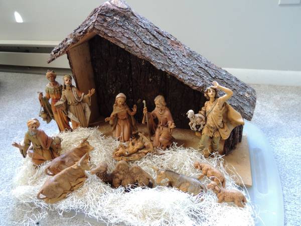 See all photos for details. Pieces are sized as follows; 2 of the Wise Men are 7 1/2" x 4 1/4", 3rd Wise Man is 5 1/4" x 3 3/4", Mary is 5 1/2" x 3 1/4", Joseph is 5 1/2" x 3 1/2", Shepherd is 7 3/4" x 4 1/2", 2 Ox are 4 1/2" x 2 1/2", Camel is 3" x 5", the 2 Sheep are each 2" x 2 3/4", Donkey is 4" x 3", Cradle is 3 1/2" x 3 1/4" and Jesus is 2 1/2" x 2". If interested, please let me know what time/day works for you to meet and which of the following locations works; Lunds off Hwy 7 and Hopkins Crossroads, Trader Joes off 394 and Hopkins Crossroads or Aldi Hopkins Crossroads and Cedar Lake Rd. Excellent condition. Each piece is made of dense polymer rubber.