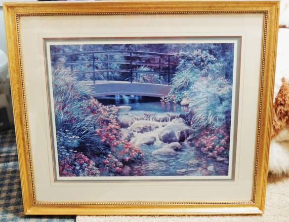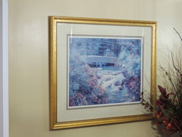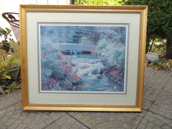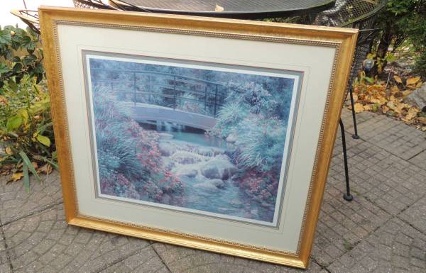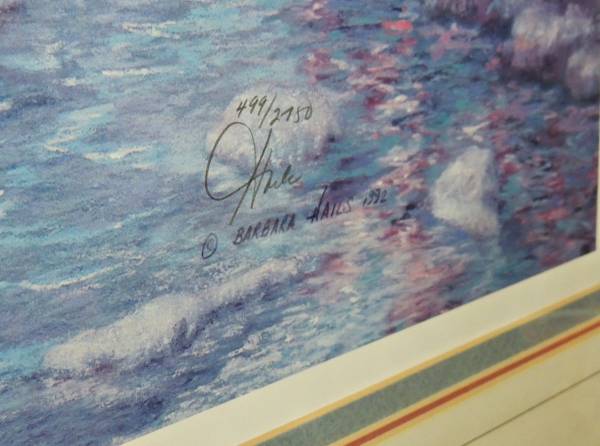 Here is a fabulous frame and glass in a 38 x 32 x 1-1/2" size. Barbara Hails 1992 Print included, (499 of 2750). Signed! Framed art. There is a small watermark on the bottom of the outer larger matte, (2nd to last photo enlargement, bottom center).