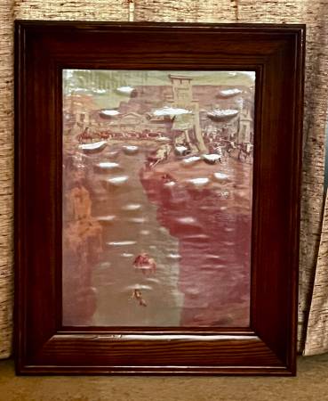 Vintage circa 1974 original painting in wooden frame as pictured Vintage '74 Hang In There Ol' Buddy By Lloyd Mitchell Art Print Wall Decor 17" wide by 21" tall shipping / delivery not available