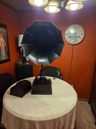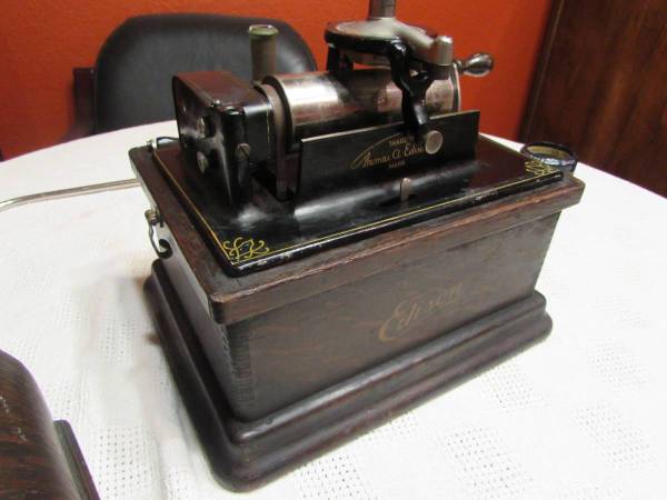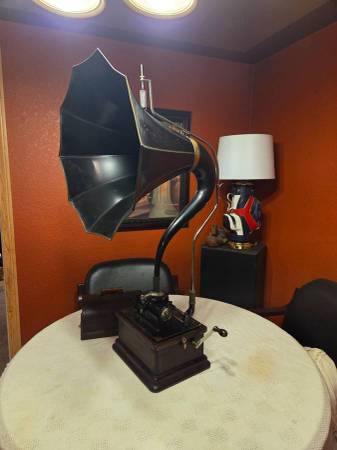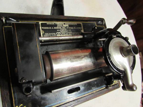 This Edison "Fireside" Model B is all original including the oak finish, paint and decals on the highly sought after "Cygnet" horn. Absolutely in beautiful condition. Plays perfectly and sounds great. This will come with 3 original cylinder records so you can start enjoying this family heirloom right away with an option to purchase many more. Feel confident as I have been collecting these old phonos and selling for over 30 years...with literally thousands of happy clients...so please check out all my other antiques listed now by clicking on the "more ads" link and come on over to see my collection of other phonographs, victrolas and Victor Talking Machines as well as many more antiques in person... thank you. Please don't just ask if this is available...only scammers do that. Thanks for understanding.