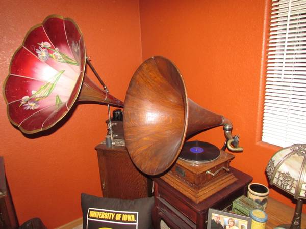 Various ORIGINAL music machines. ALWAYS buying! Please message for information. Collecting, selling and repairing for over 30 years. Located in NE Iowa. Please email or message...AND BE SURE TO CLICK ON "more ads" TO SEE ALL MY OTHER PHONOGRAPHS & ANTIQUES NOW LISTED...thank you.