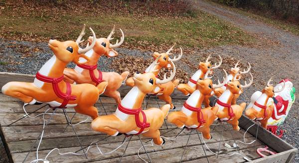 Complete set! Santa with 9 reindeer, the reindeer have all the stands, lights and reins. The set is in excellent condition with no cracks, a few minor scuffs/scratches but overall it's a very nice set. These are hard to find complete especially in this condition. $1950. Text works best, 7one5-2nine9-zero zero 19