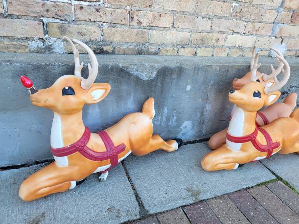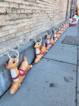 Special SALE -- Blow Mold Santa in his Sleigh with 9 Reindeer -- cash only -- Very Good Condition -- pick up is at Alleyway Vintage Warehouse in downtown Jordan MN -- the address is shown on the yellow business card in this posting -- Open Saturdays and Sundays 11am-3pm --