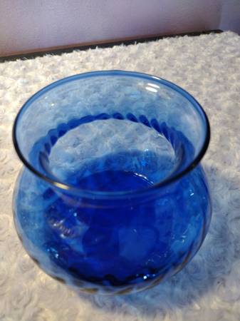 2. Vintage Indiana Glass hand blown cobalt blue Illusions pattern vase.