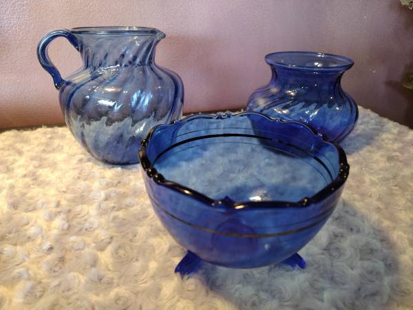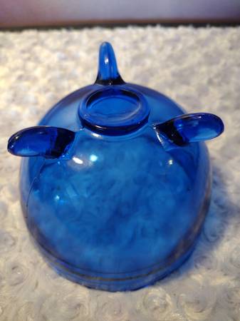 We have 2 vintage to possibly antique cobalt blue glass items.