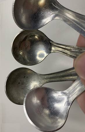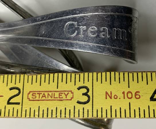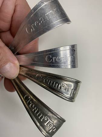 Four (4) antique cream ladles labeled "Cream Top." These were for taking the separated cream off the top of an open glass bottle of milk. They measure about 3.5 inches long and are all slightly...