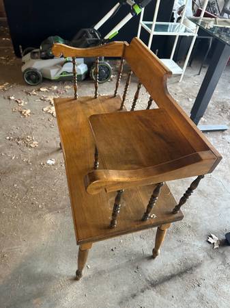 wood gossip bench in pretty good condition with one loose arm see pics if ad is up its still available cash only