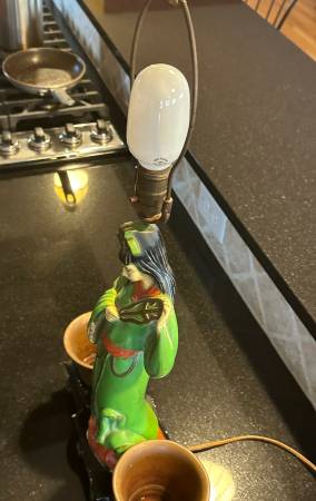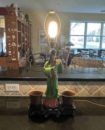 Unusual table light from the 1920's or 30's. Has copper planter for each side. Measures 8" x 13" tall. Works perfectly. You can take this today.