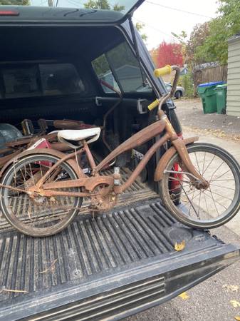 Three vintage children bikes $100 for all 1.AMF, roadmaster 16 inch hard tires. Coaster brake moveable bar boy / girl 2.JR. 20ll 20 inch tires, moveable bar boy/ gril 3. Roll fast 20 inch tires...