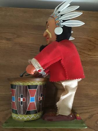Vintage “Brave Eagle” Toy - $25 Battery Operated The toy is in good, working condition. Require 2D batteries. The toy has damage - the drum top is ripped The tin has scratches and wear Will meet to...
