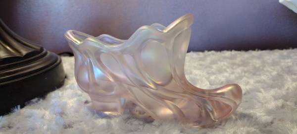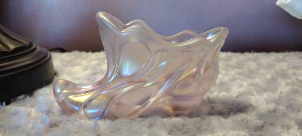 2. 1990's iridescent pink Fenton glass Victorian slipper shoe. 5" x 3" high