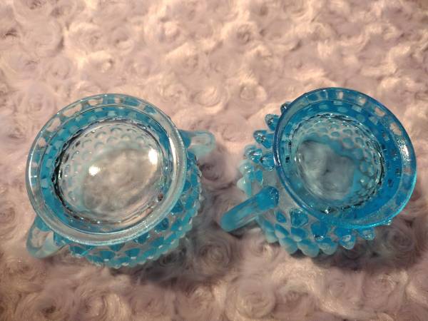 4. Fenton hobnail Sugar/ Creamer set in blue Opalescent glass.