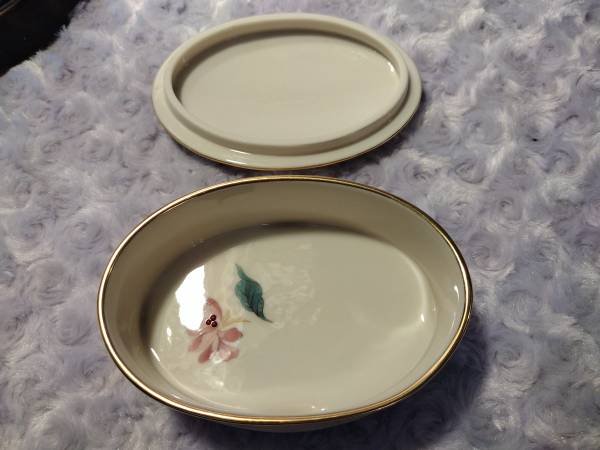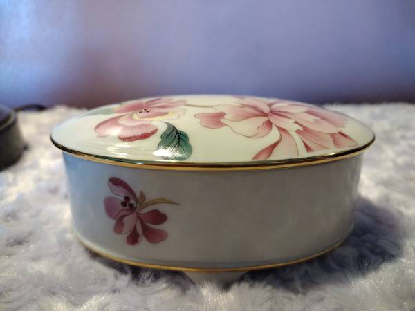 Lenox Barrington Collection oval footed fine bone china box w/ lid.