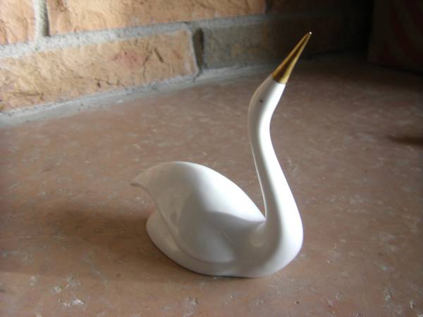 vintage 1777 porcelain Hollohaza 5 in tall white swan with gold beak excellent condition no chips or cracks manufactured 1990 Made in Hungary