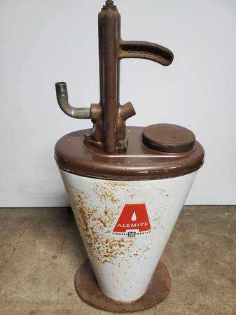 Alemite (Stewart Warner) service station hand crank lube pump. No dents, clean original condition. $300. No email, call or tx 715nine6five28one2.