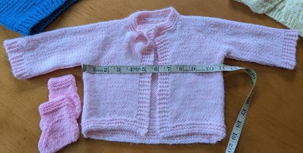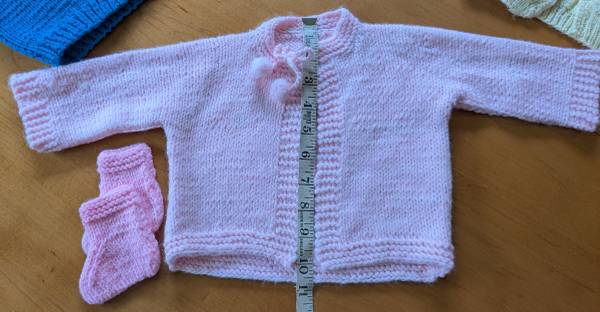Handknit Pink Baby Sweater and Booties 11” x 11” Handmade - baby &...