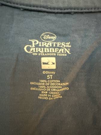 Disney Pirates if the Caribbean long-sleeve tshirt, size 5T (toddler)