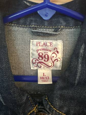 Children’s Place Girls’ Denim jacket, size Large (10-12), with button front closure, 2 button breast pockets and 2 other pockets