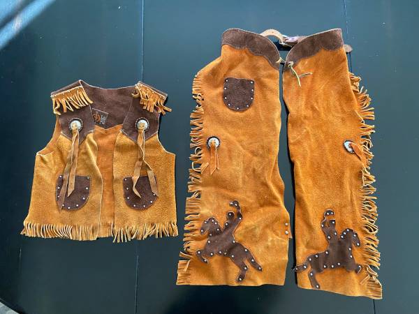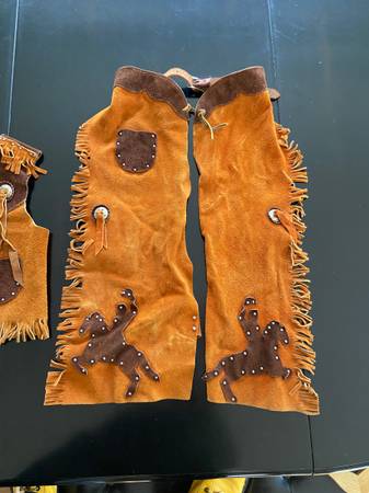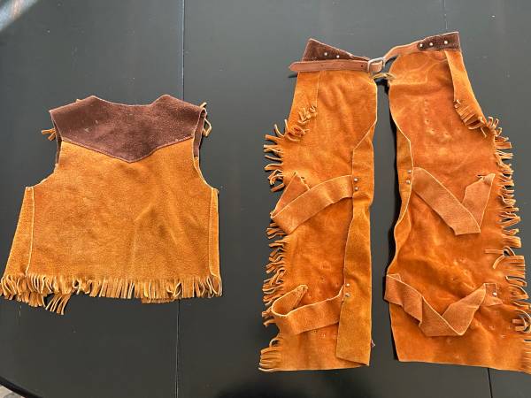 Genuine Suede Cowboy Chaps and Vest Set by John R. Craighead Co Inc
