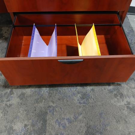 • Lateral file cabinet included