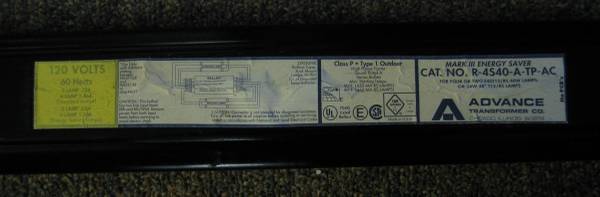 ADVANCE TRANSFORMER CO.,R-4S40-A-TP-AC MARK III ENERGY SAVER RAPID START BALLAST ,120V 60 HZ.FOR 4 OR 2 F40T12/RS 40W LAMPS,OR 34W 48" T12/RS LAMPS