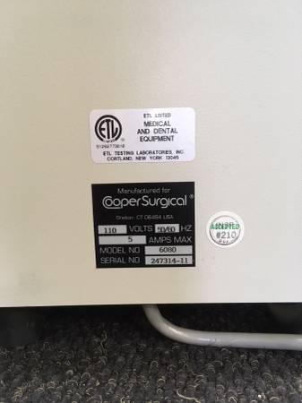 COOPER SURGICAL 6080,SN 247314-11,SMOKE EVACUATION SYSTEM,110V 50/60HZ 5AMPS MAX ITEM IS USED,FILTER LIFE UNKNOWN MCID 72796 PLEASE INCLUDE A PHONE NUMBER WHEN RESPONDING TO AD PLEASE CHECK YOUR...